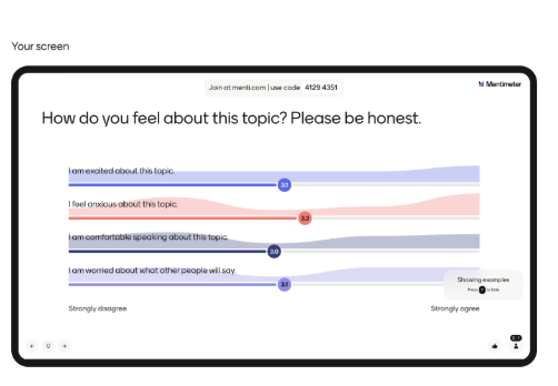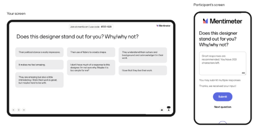 • Feedback loop: Mentimeter makes it easier for teaching staff to ask for and receive a broad range of feedback on what has been taught and how students are feeling. This in turn allows teachers to focus on what is really needed.