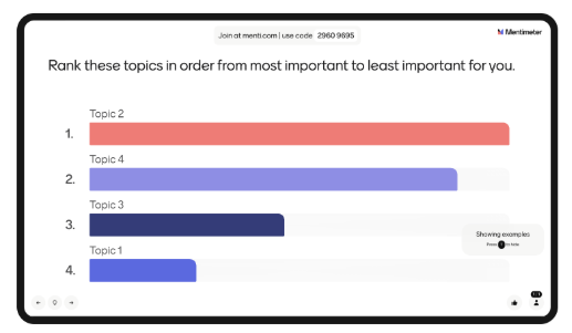 • Ranking: prioritise topics, ideas, or preferences.