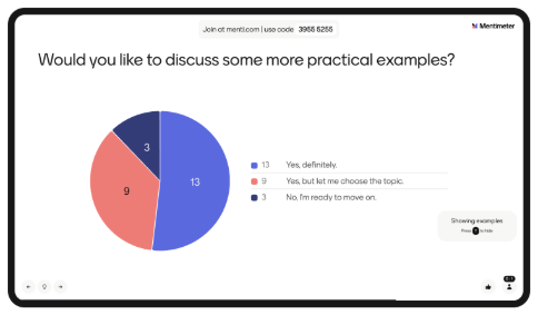 • Engagement: Mentimeter, and other online platforms, support active learning, increasing cognitive engagement and, potentially, acquisition and retention.